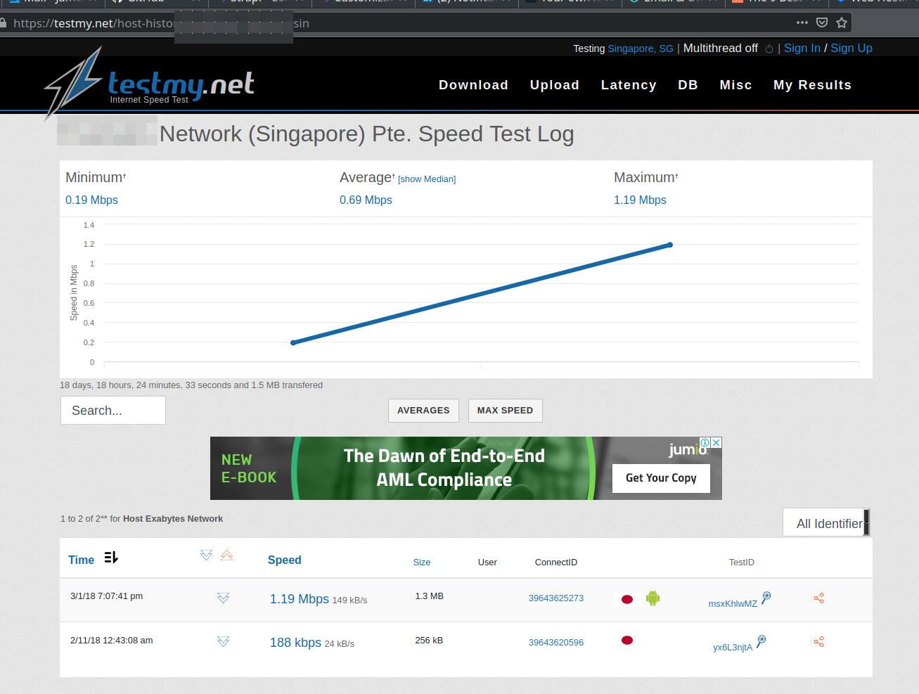 | Bandwidth speed | 20MBps | < 1MBps (1.19mbps) | 2000% faster |